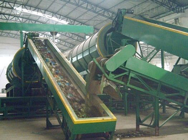 2、破碎机的特点是,垃圾中硬材料的破碎效果大于软材料的破碎效果。利用这一特点,由于垃圾中的可燃材料(竹、木、塑料等有机物)不易被上述选定的破碎机破碎,其他硬材料(砖、石等)已破碎至一定尺寸(50-90mm)以下,进入筛机(可选择滚筒筛和振动筛),筛材料多为可燃材料,收集后送垃圾焚烧厂焚烧处理,筛材料已处理成一定规格,选择大部分有机物,可直接使用工程填筑等简单使用。一次分选后的材料及相应的下落。主要成分的为可燃纸、塑料、纺织物、筛选不可燃砖、石、玻璃陶、砌块。灰尘直接使用或进入下一道分选破碎,筛选其它大件。可回收材料可进入以下进一步处理,以提高其利用价值。
