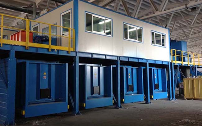 破碎的目的是减容、焚烧、堆肥。进料方式有叉车进料、输送机进料、抓斗进料等。出料方式有输送机出料等。破碎后的包装方式。可根据自身情况调整生产线技术。有时厂房尺寸也限制破碎机设备和生产线的工艺流程形状,辅助设备可根据实际情况配置。进料输送机、出料输送机、除铁器、手推车、压力装置、液压驱动、智能除尘系统、智能远程监控系统。